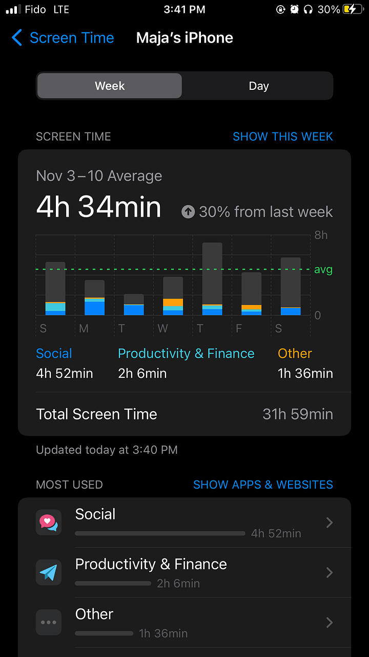 I am going to share something vulnerable with you. Between November 3 and November 10, I spent nearly forty (four-zero!!) hours on my phone. Yikes.